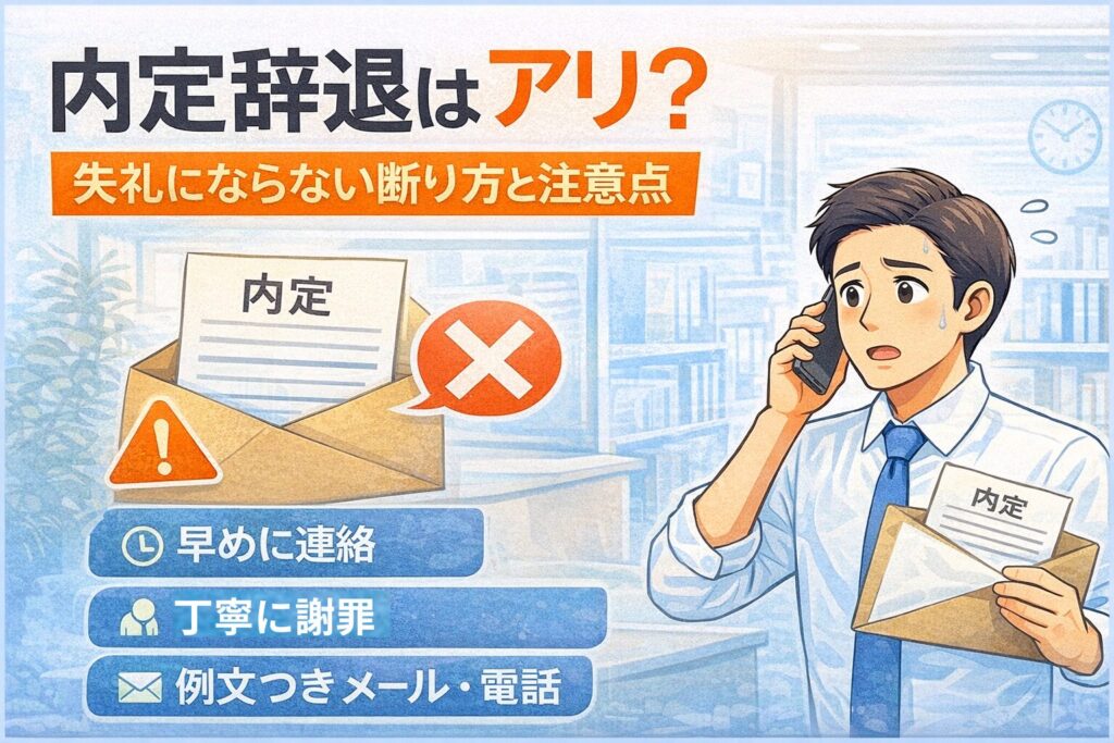 転職活動を進める中で、内定をもらったものの「本当にこの会社でいいのだろうか?」「他にもっと合いそうな企業が出てきた」と悩むことは珍しくありません。 そんなときに気になるのが、**内定辞退は失礼にあたるのか?**という点です。 結論から言うと、... -