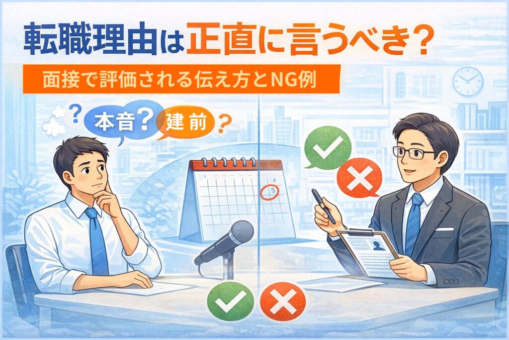 転職活動を進める中で、多くの人が悩むのが「転職理由をどこまで正直に話すべきか」という問題です。「本音を言ったら落とされるのでは?」「建前だけでいいの?」と不安になる方も多いでしょう。 結論から言うと、転職理由は“正直さ”よりも“伝え方”が重要... -